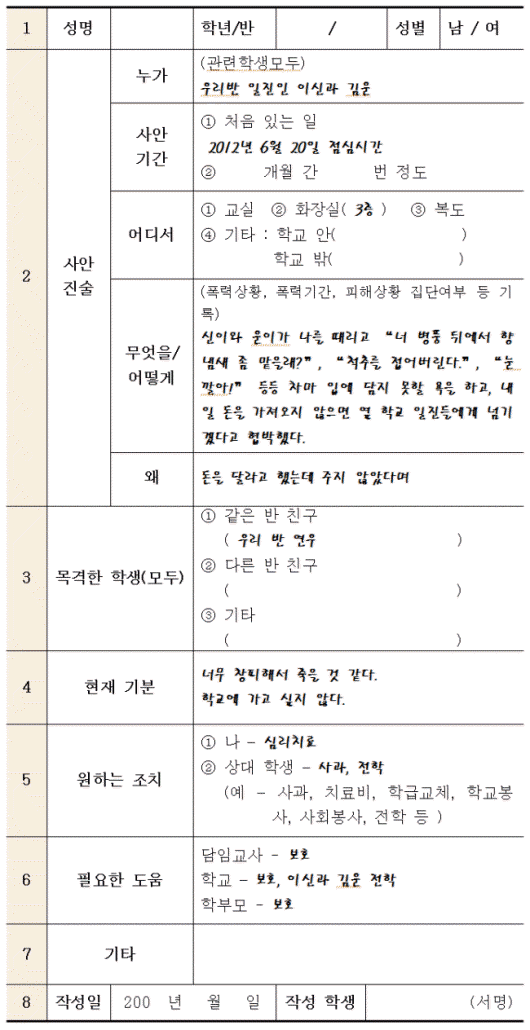 괴롭힘의 내용