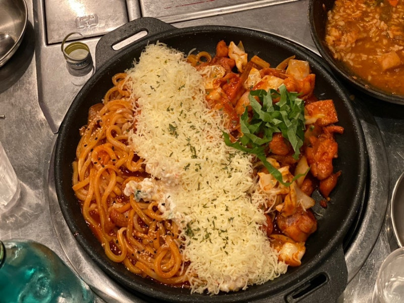 에서 보시는 것처럼, 치즈와 함께 나와서 더욱 맛있었답니다. 해물 파전은 바삭하게 구워져서, 해물의 풍미가 가득했어요. 정말 맛있어서 한 입 한 입이 행복했답니다.