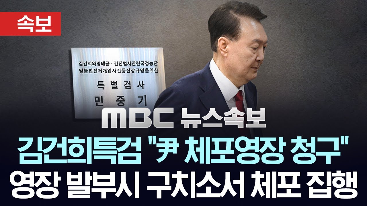 [4] YouTube · MBCNEWS - [속보] 법원, 尹 체포영장 발부..김건희특검, 서울구치소에서 체포 ... (https://www.youtube.com/watch?v=7Ic4E9Rd0Rs)