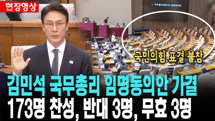 [3] 오마이뉴스 - 김민석 총리 임명동의안 찬성 173표 가결... 국힘은 표결 보이콧 (https://www.ohmynews.com/NWS_Web/View/at_pg.aspx?CNTN_CD=A0003145591)