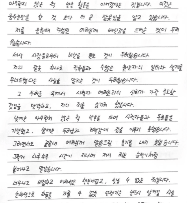 자숙은 자신의 잘못을 깊이 반성하고, 그로 인해 발생한 문제를 해결하기 위한 시간을 갖는 것을 의미합니다. 홍장원은 이번 사건을 통해 자신의 행동이 얼마나 많은 사람들에게 영향을 미쳤는지를 깨닫고, 앞으로는 제 채널과 모든 방송 활동을 접고 무기한 반성과 자숙의 시간을 갖겠다고 다짐했습니다.
