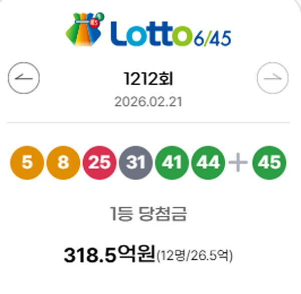 안녕하세요! 오늘은 많은 분들이 기다리셨던 로또 제 1212회 당첨번호와 당첨금에 대해 알아보겠습니다. 이번 추첨은 2026년 2월 21일에 진행되었으며, 많은 분들이 기대하셨던 만큼 결과가 궁금하실 텐데요. 그럼 바로 시작해 보겠습니다!