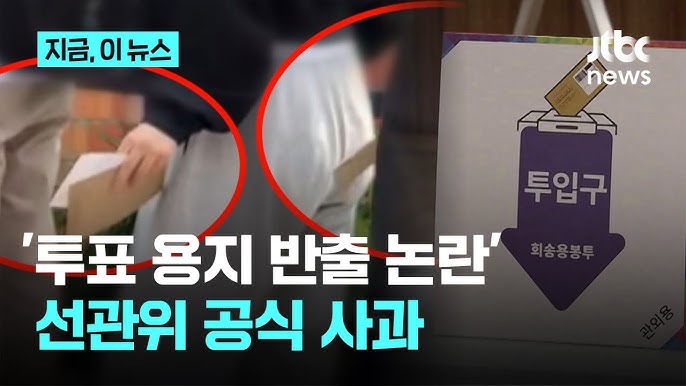 [1] YouTube · YTN - 투표용지 '반출' 논란…선관위 대국민 사과 [뉴스START] 다시 ... (https://www.youtube.com/watch?v=OTclnZZCrkU)