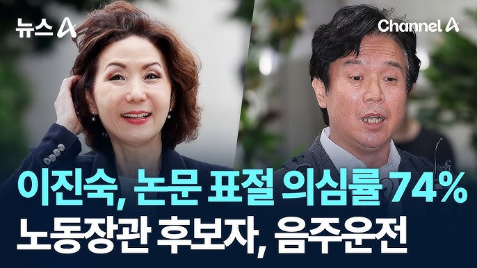 [2] 채널A - 이진숙, 논문 표절 의심률 74%…노동장관 후보자, 음주운전 ... (https://ichannela.com/news/main/news_detailPage.do?publishId=000000480756)