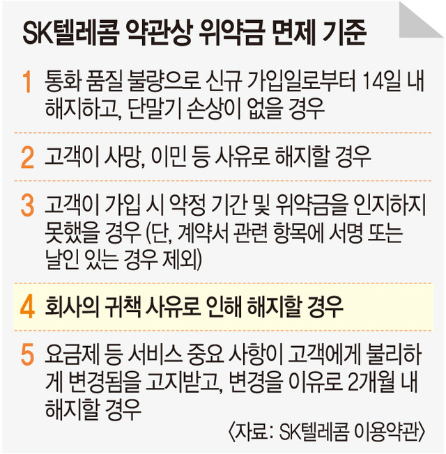 - 신규 가입자는 서비스 문제로 인해 14일 이내에 위약금 없이 해지할 수 있습니다.