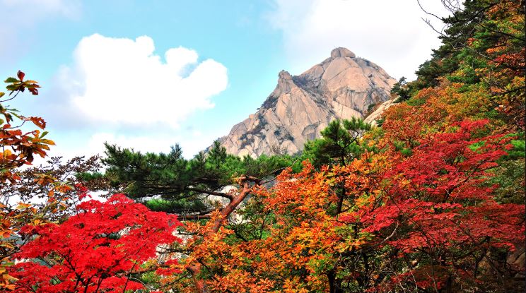 설악산은 그 자체로도 아름답지만, 가을철 단풍이 드는 시기에는 더욱 특별한 매력을 발산합니다. 특히, 설악산의 단풍은 다양한 색깔로 물들어 가는 모습이 장관을 이루며, 많은 관광객들이 이곳을 찾는 이유 중 하나입니다. 단풍이 물든 나무들과 함께 어우러진 설악산의 웅장한 바위들은 마치 한 폭의 그림과 같습니다.