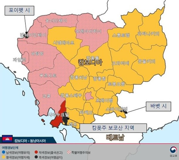 캄보디아 보코산·바벳·포이펫 여행금지 발령에 대한 정보