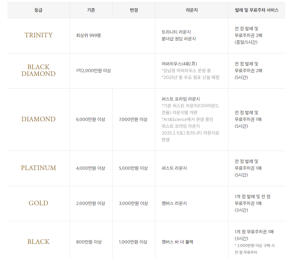 - TRINITY : 전용 라운지 이용, 무료 음료 서비스, 특별 이벤트 초대