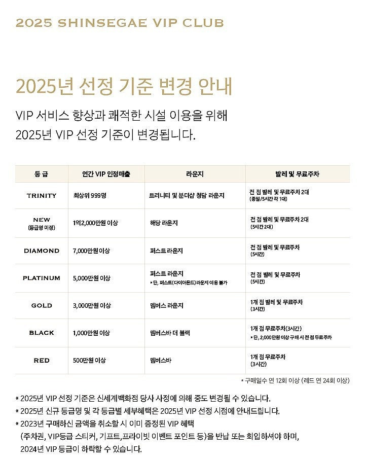 [3] 신세계백화점 - 선정 기준 안내 | 신세계 VIP 클럽 (https://department.shinsegae.com/service/vipclub/guide_2025.do)