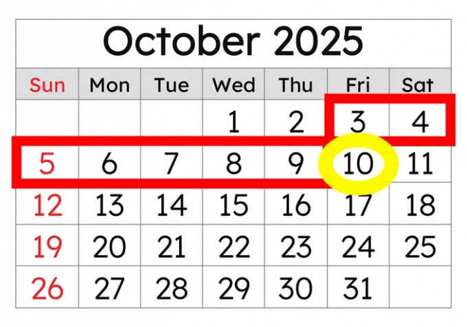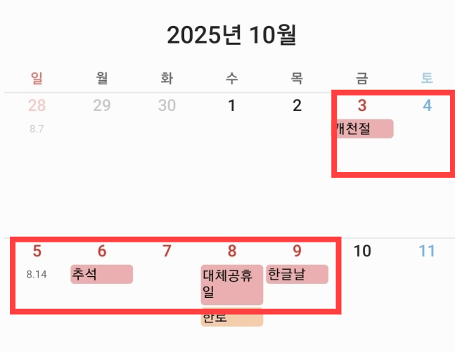 2025년 10월의 황금연휴 일정