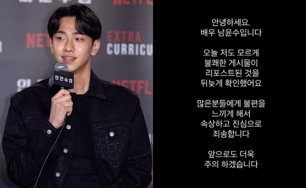 [1] hankyung.com - 남윤수, 19금 영상 게재 논란에 결국 직접 입 열었다 - 한국경제 (https://www.hankyung.com/article/2025041384497)