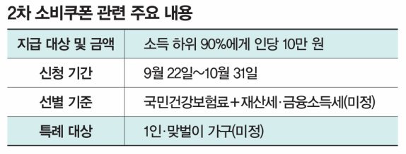 [2] 머니투데이 - '1인 10만원' 2차 소비쿠폰, 국민 10% 못 받는다…기준 오늘 ... (https://news.mt.co.kr/mtview.php?no=2025091207580376111)