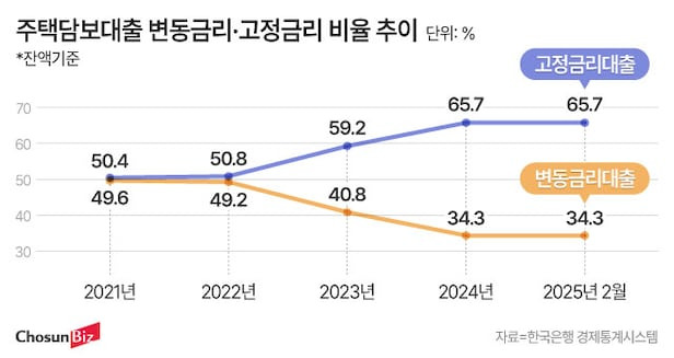 에서는 고정금리와 변동금리의 비율 변화를 보여주고 있습니다. 고정금리의 비율이 증가하고 있는 추세를 확인할 수 있습니다.